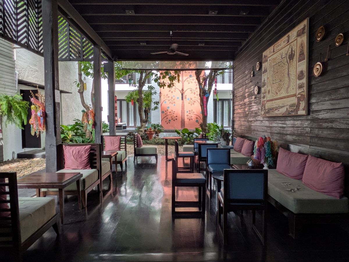 レストランはメインストリートに面してるんですが、チェンマイお馴染みのグルグル電線の上をリスが朝から元気よく駆け回る姿を目にすることができます。