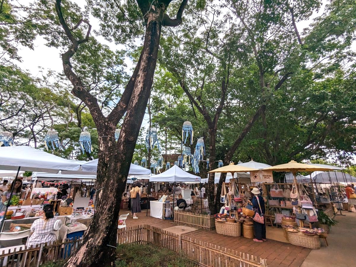 JJマーケットは四角い旧市街から北へ1Kmちょいの場所にあるマーケット。ハンドメイド雑貨や天然素材の手作りの服、オーガニック雑貨などを販売するブースが所狭しと並んでいます。